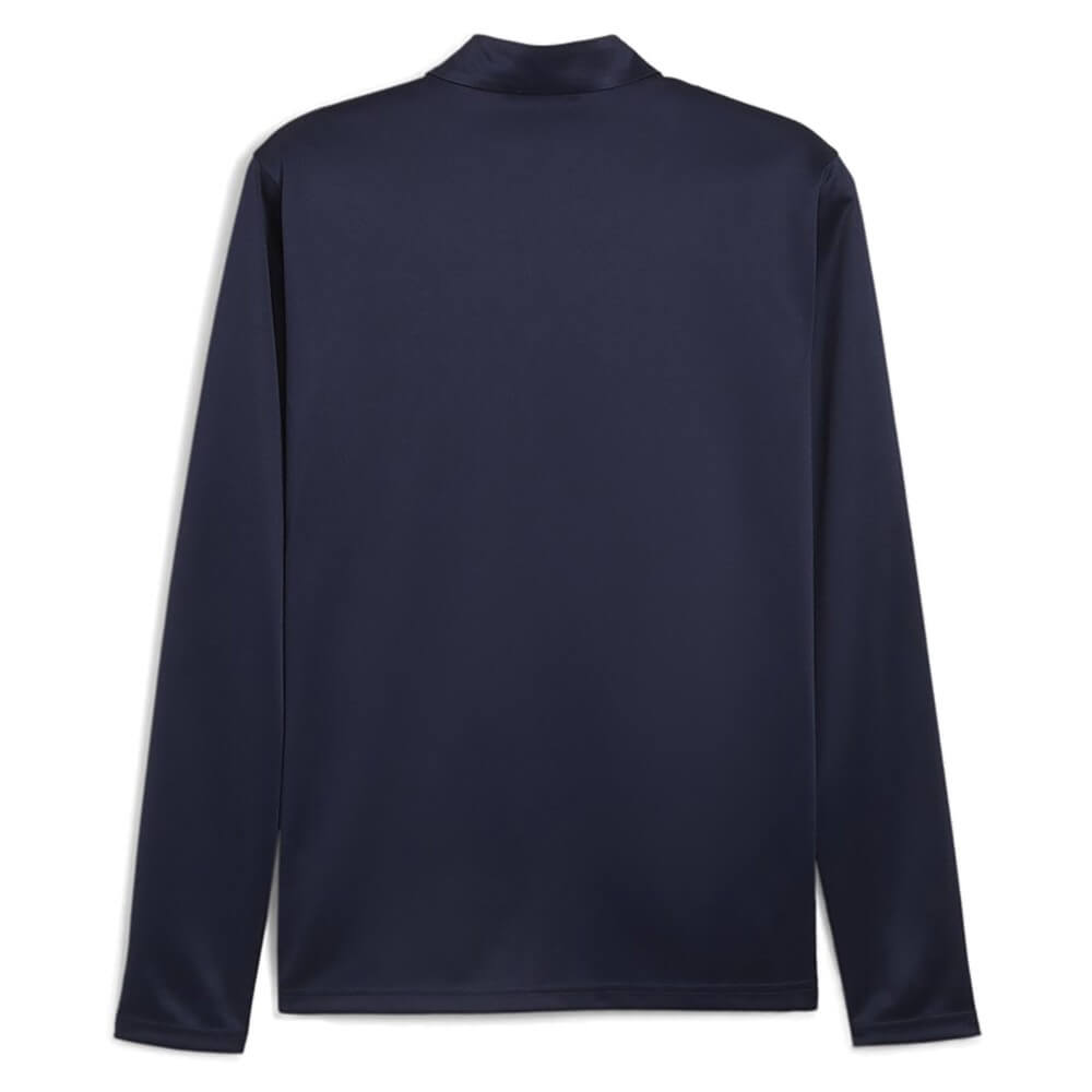 Mânecile lungi acoperă brațele complet, ideale pentru antrenamentele de dimineață sau pe vreme mai rece. Emblema PUMA Cat cusută pe pieptul drept adaugă un detaliu distinctiv și autentic al brandului. Croiala Regular Fit se potrivește majorității tipurilor corporale masculine. Nu este nici prea strâmtă, nici prea largă — exact cât trebuie pentru libertate de mișcare.