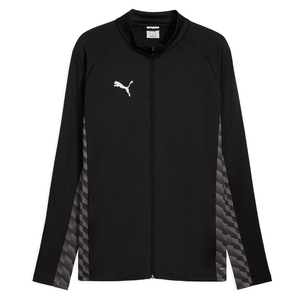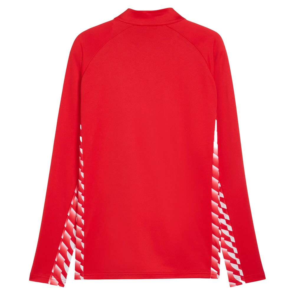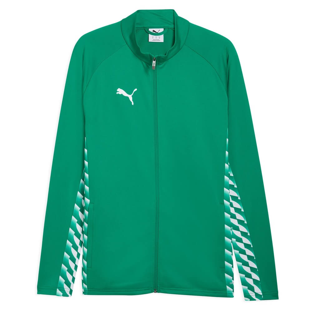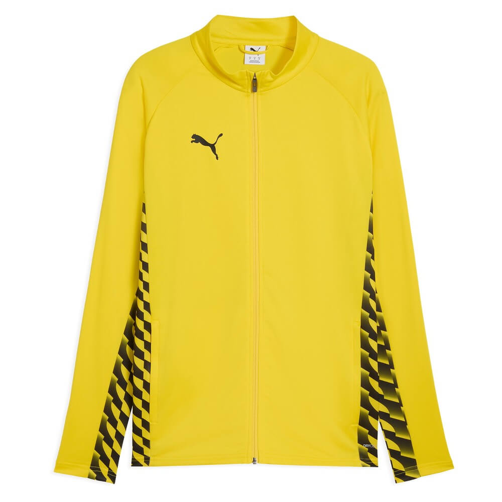 Colectia teamLIGA26 ofera juniorilor acelasi design colorat si dinamic ca echipamentul profesionist. Panourile laterale si cele de pe antebrat reproduc grafica inspirata din Puma Formstripe. Culorile puternice fac jacheta usor de recunoscut pe teren si la deplasari.