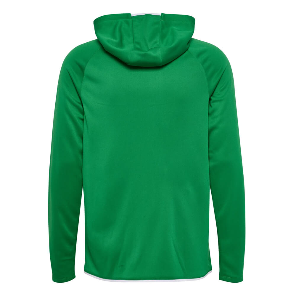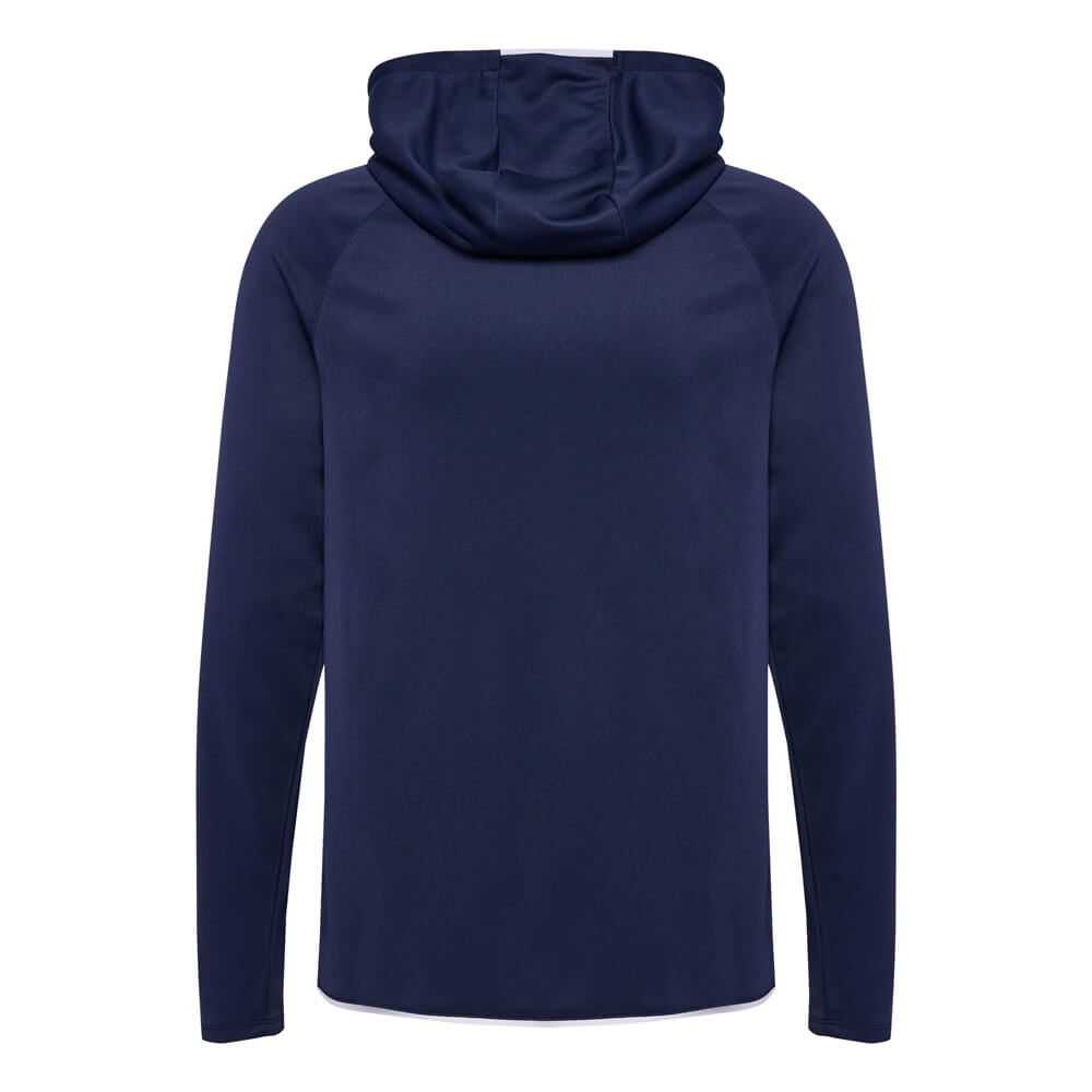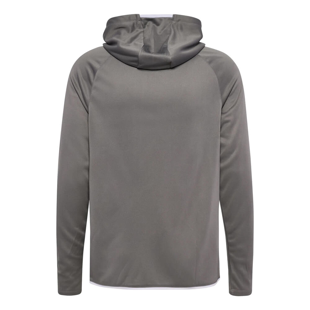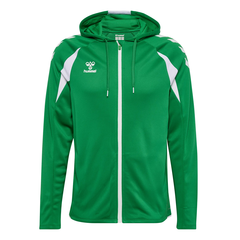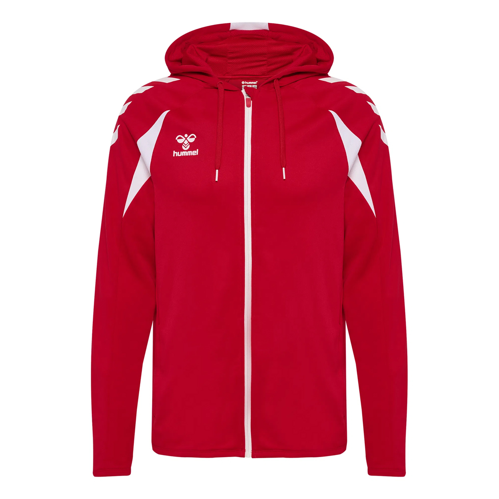 Materialul din poliester evacuează transpirația eficient, menținând corpul uscat pe toată durata antrenamentului. Fermoarul complet pe toată lungimea îți permite să reglezi temperatura instant, fără a fi nevoit să-l scoți. Buzunarele laterale cu fermoar sunt practice — obiectele personale rămân în siguranță în timpul oricărei activități. Logo-ul Hummel cusut pe față și pe mânecă adaugă un detaliu sportiv discret, dar distinctiv.
