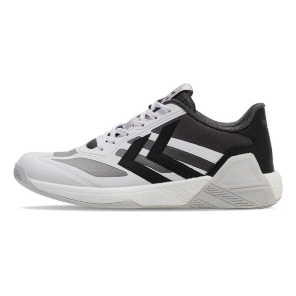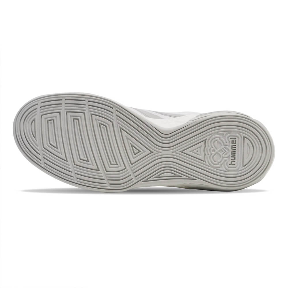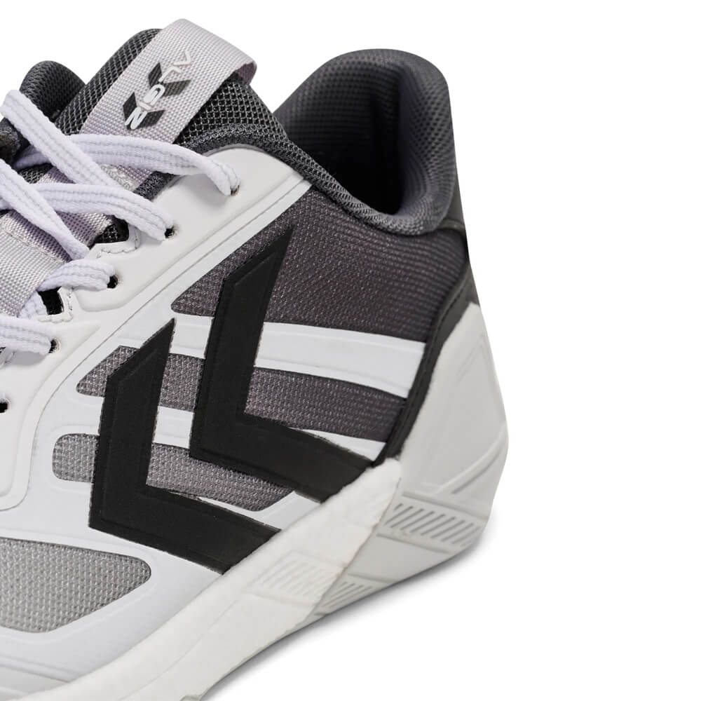 Talpa pantofilor hummel ALGIZ IV este fabricată dintr-o combinație de spumă EVA și cauciuc Non Marking, două materiale complementare care oferă proprietăți superioare de amortizare. Spuma EVA absoarbe eficient șocurile generate la fiecare pas, reducând presiunea asupra articulațiilor genunchilor și gleznelor. Cauciucul Non Marking asigură o aderență optimă pe suprafețele de joc din sală, fără a lăsa urme pe parchet. Randamentul energetic ridicat al tălpii permite o revenire rapidă după fiecare impact, contribuind la menținerea energiei pe parcursul întregului joc. Tehnologia Tripletech integrată în construcția pantofului fixează și protejează piciorul în mod activ, asigurând stabilitate și confort în orice situație de joc. Materialele ușoare utilizate în construcția feței pantofului permit o respirabilitate crescută, menținând piciorul uscat și confortabil chiar și în condiții de efort intens. Designul general al modelului ALGIZ IV a fost gândit pentru a răspunde nevoilor specifice ale handbalului, un sport care implică schimbări rapide de direcție și accelerații bruște.