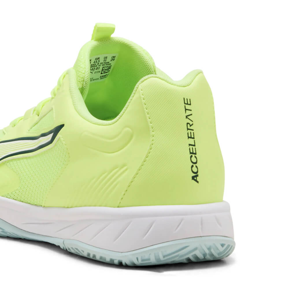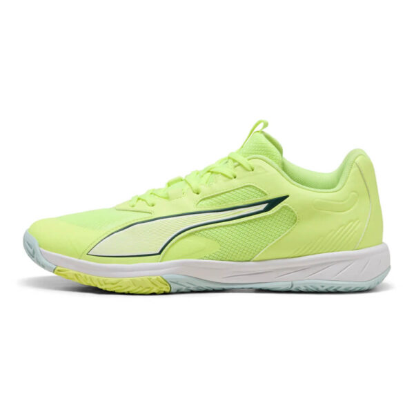 Construcția pantofului Puma Accelerate Pro 4 se bazează pe trei tehnologii cheie care lucrează împreună pentru a maximiza performanța. Tehnologia PROFOAM asigură o amortizare excelentă la fiecare pas, reducând impactul asupra articulațiilor și mușchilor. Sistemul PWRTAPE integrat în structura pantofului îmbunătățește stabilitatea și eficiența mișcărilor în timpul activităților de interior, oferind un suport superior al piciorului. Talpa exterioară este realizată din cauciuc special PUMAGRIP, un material care asigură tracțiune optimă pe parchetul sălilor de sport. Fețele pantofului sunt confecționate din materiale ușoare și respirabile, permițând aerisirea piciorului și prevenind supraîncălzirea. Designul aerodinamic al acestui model este gândit pentru cei mai rapizi jucători, iar fiecare detaliu tehnic contribuie la obținerea celui mai bun timp de reacție. Îmbinarea dintre suport, amortizare și tracțiune face din Puma Accelerate Pro 4 un pantof de înaltă performanță pentru sala de sport.