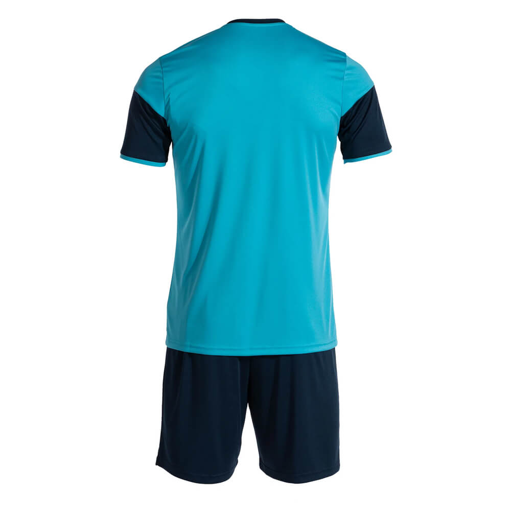 Acest set este format dintr-un tricou cu mânecă scurtă și pantaloni scurți. Este ușor, confortabil, respirabil și oferă o libertate excelentă de mișcare. Tricoul are un decolteu în V cu o garnitură interioară elastică pentru a optimiza croiala și a preveni potențialele iritații. Prezintă o garnitură de culoare contrastantă. Pantalonii scurți au o talie elastică reglabilă cu un șnur interior. Sunt confecționați dintr-un material ușor și rezistent la rupere, care crește durabilitatea. De asemenea, sunt respirabili și ajută la reglarea transpirației.